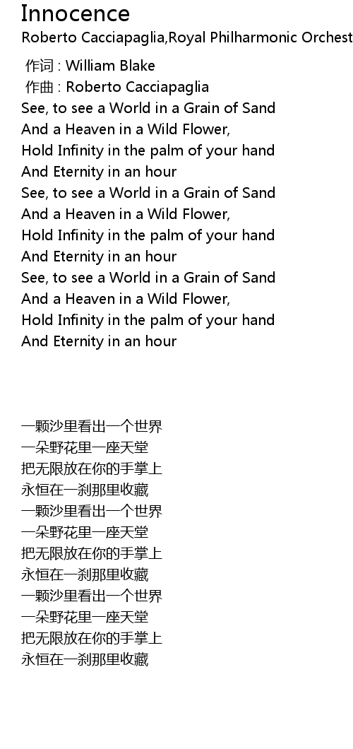 | [00:33.580] | See, to see a World in a Grain of Sand |