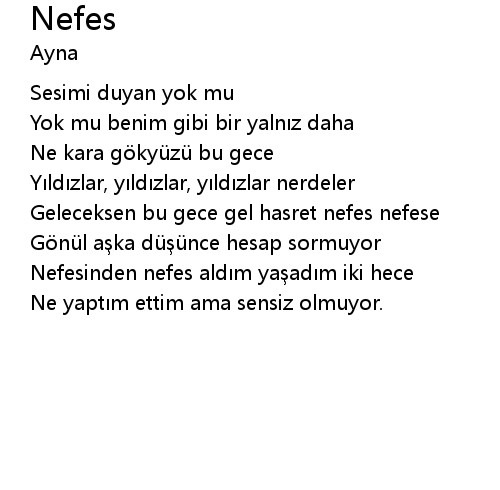 | Nefesinden nefes ald m ya ad m iki hece | |