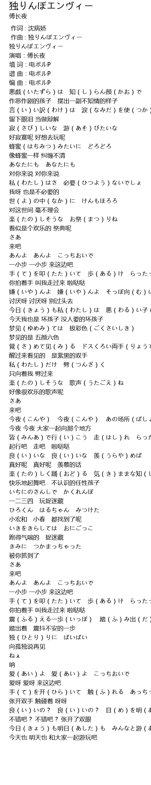 | [01:01.906] | 今日(きょう)も私(わたし)は 悪(わる)い子(こ) 要(い)らん子(こ) |