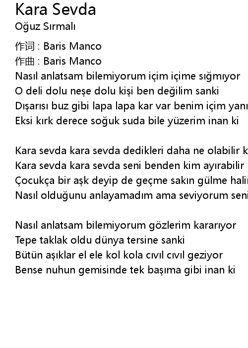 | Kara sevda kara sevda seni benden kim ayırabilir ki? | |