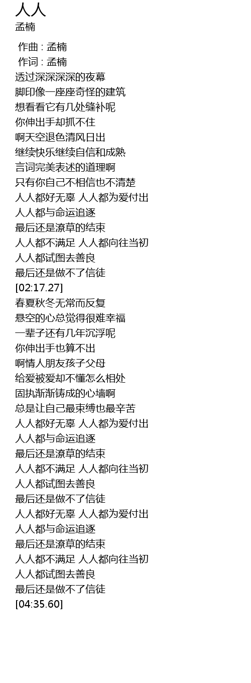 人人 歌词