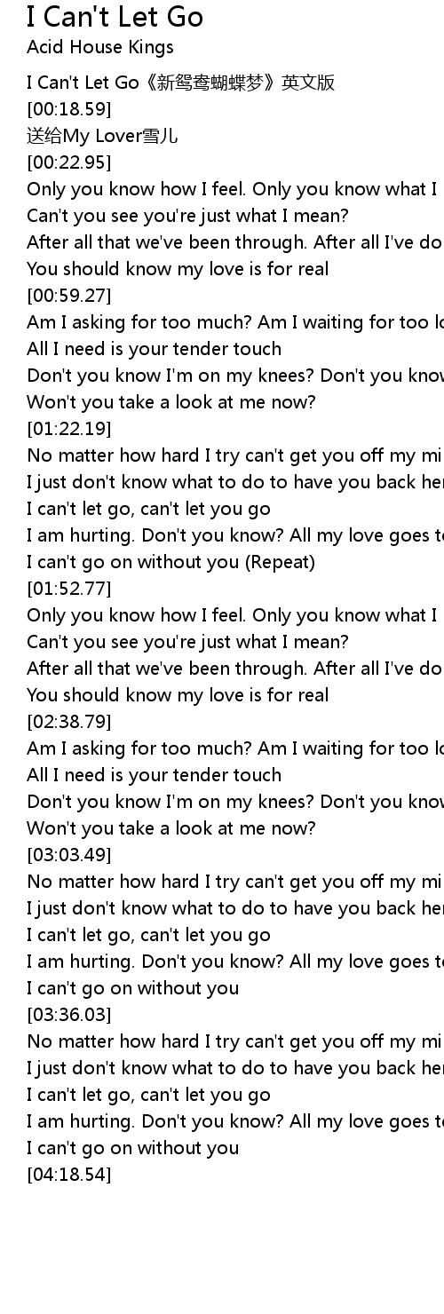 | [00:02.63] | I Can' t Let Go xīn yuān yāng hú dié mèng yīng wén bǎn |