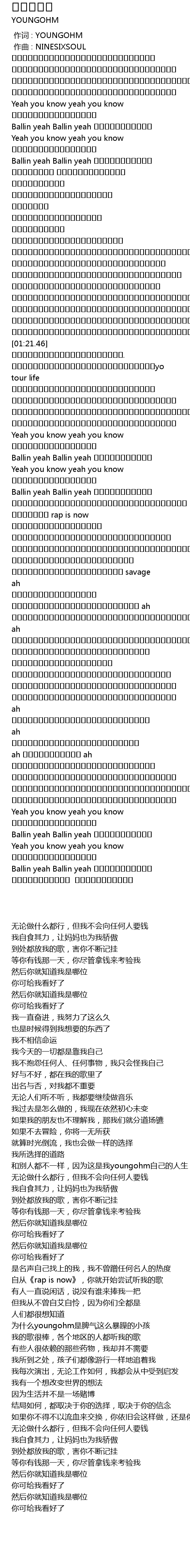| [01:27.97] | 和别人都不一样,因为这是我youngohm自己的人生 |
