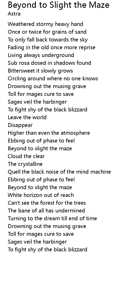Beyond to slight the maze |