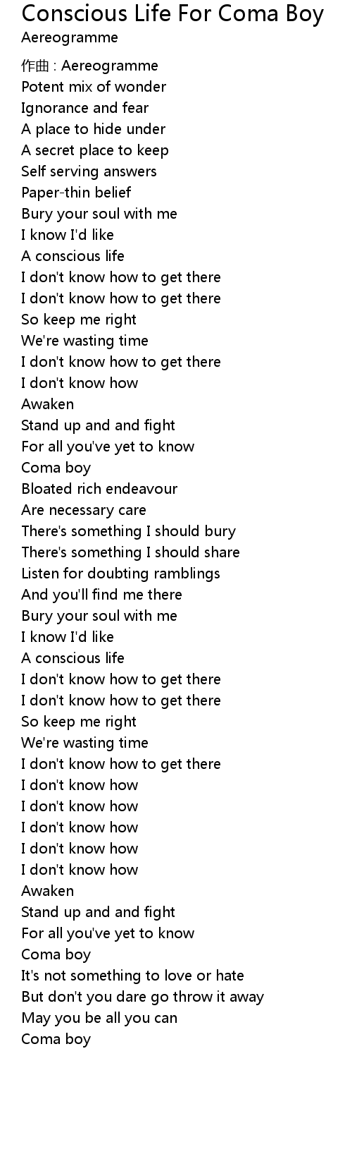 | 歌曲 | Conscious Life For Coma Boy |