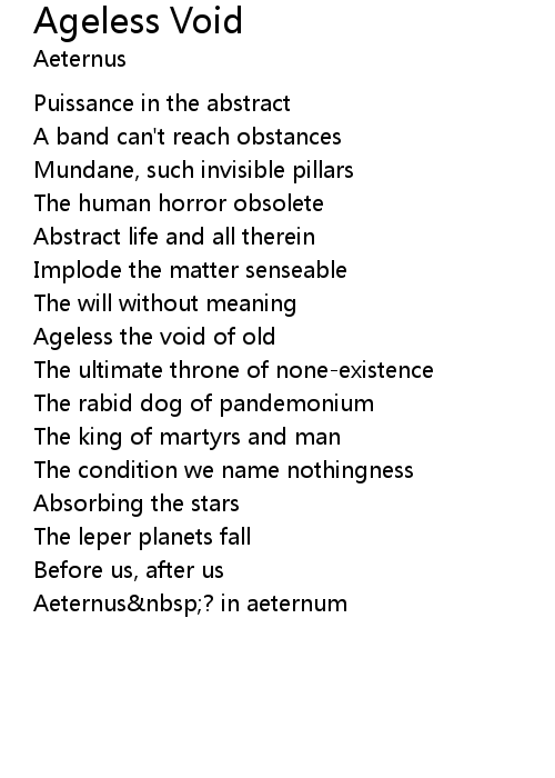 | Ageless the void of old | |