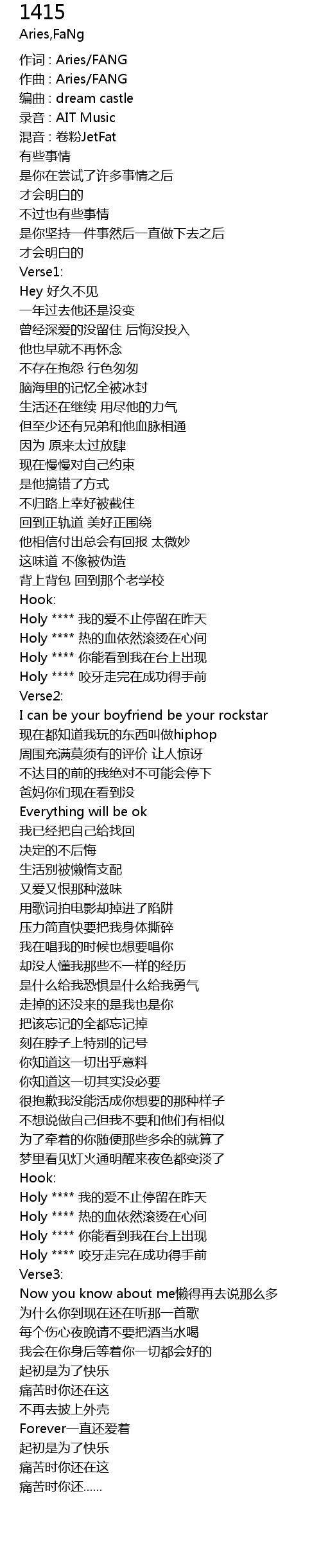 | 作词 : Aries/FANG | |