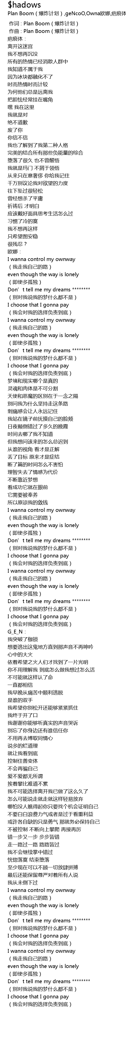 | 歌曲 | $hadows |