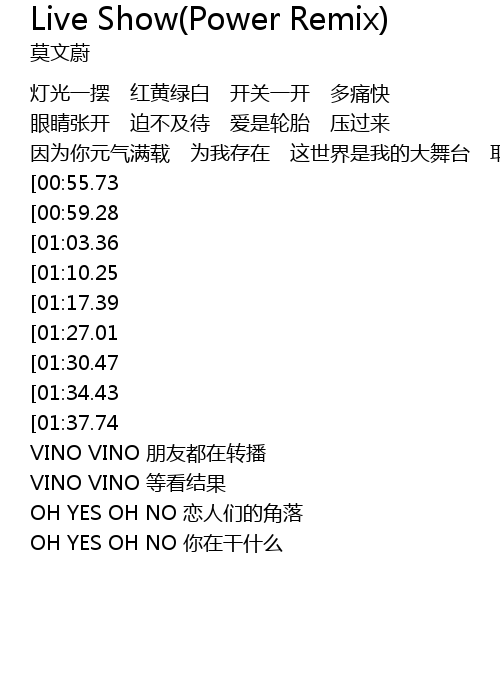 | [02:50.10][01:30.47] | VINO VINO 最炫是我 |