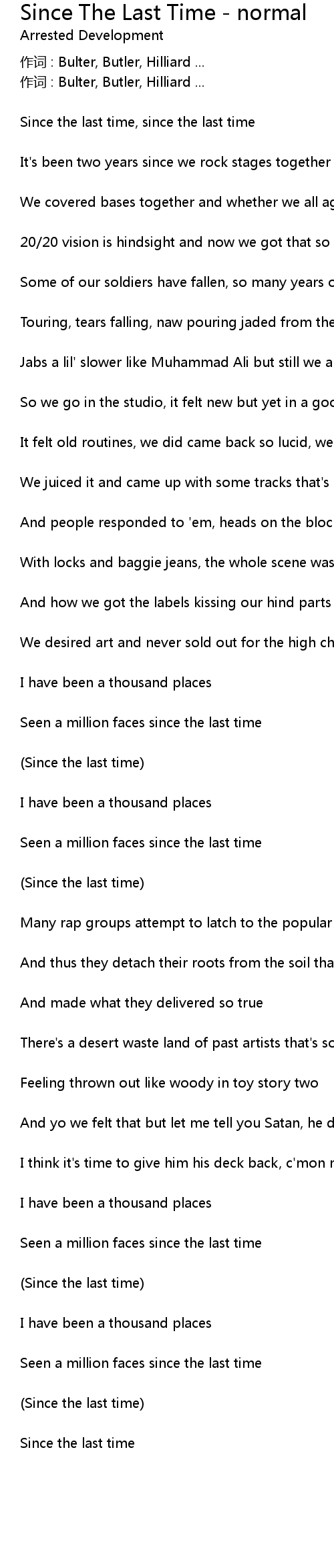 | 歌曲 | Since The Last Time - normal |