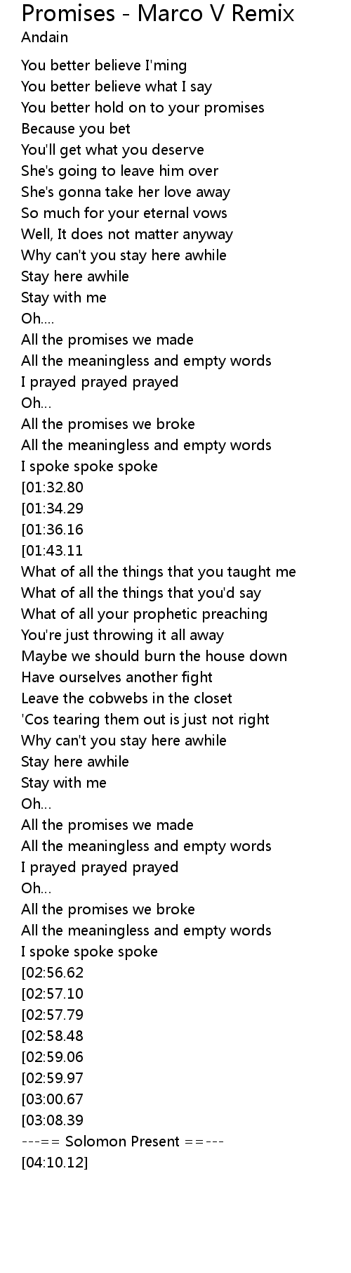 | [00:29.42] | You better hold on to your promises |
