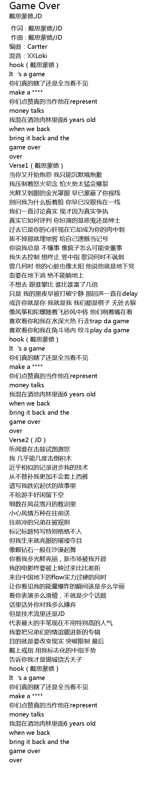 | [00:00.000] | 作词 : 戴思蒙德/JD |