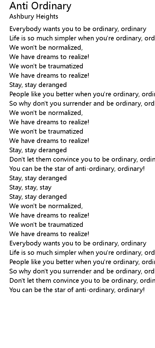 Everybody wants you to be ordinary, ordinary |