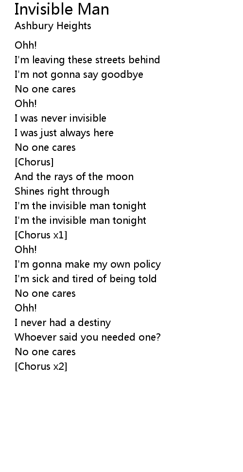 | I'm the invisible man tonight | |