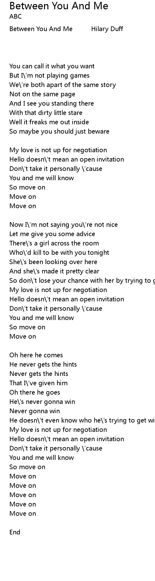 | Between You And Me Hilary Duff | |