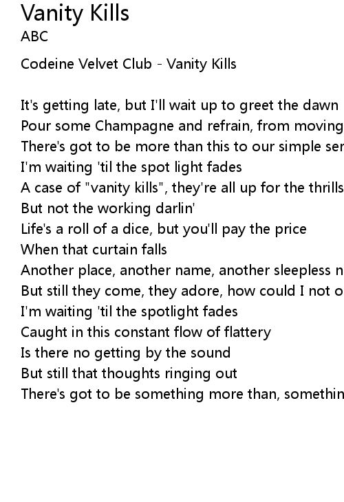 | Codeine Velvet Club - Vanity Kills | |