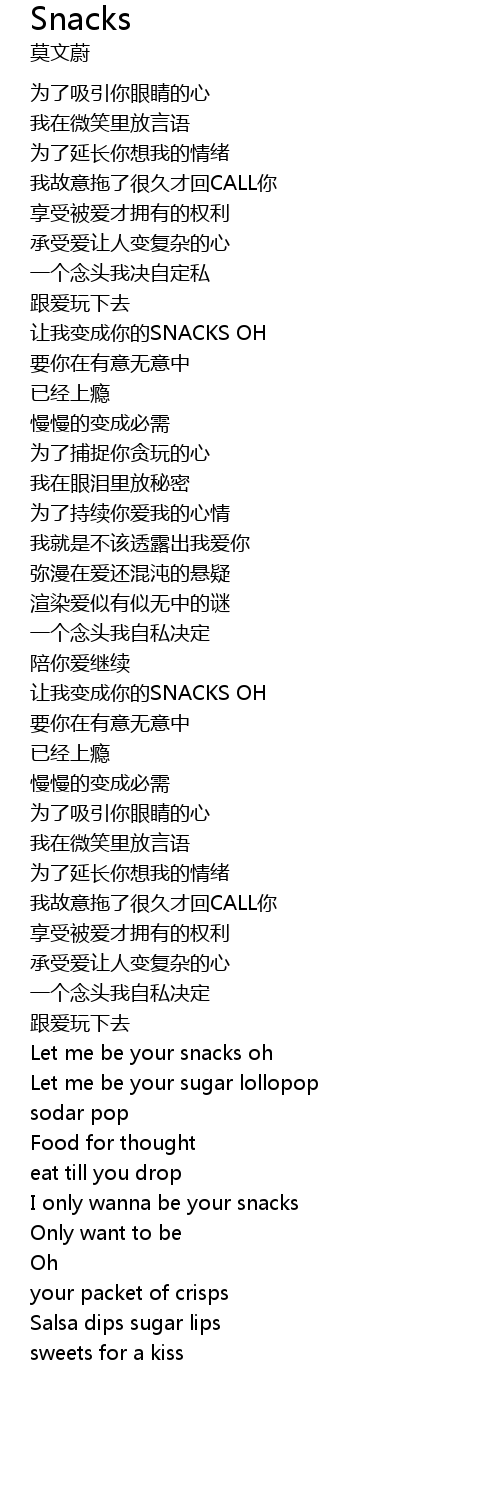 | [01:59.47] | 让我变成你的SNACKS OH |