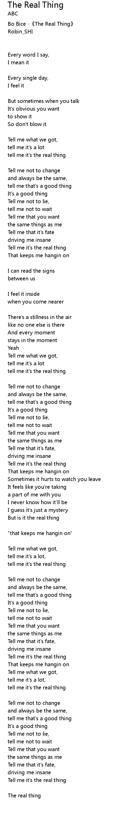 | 歌曲 | The Real Thing |