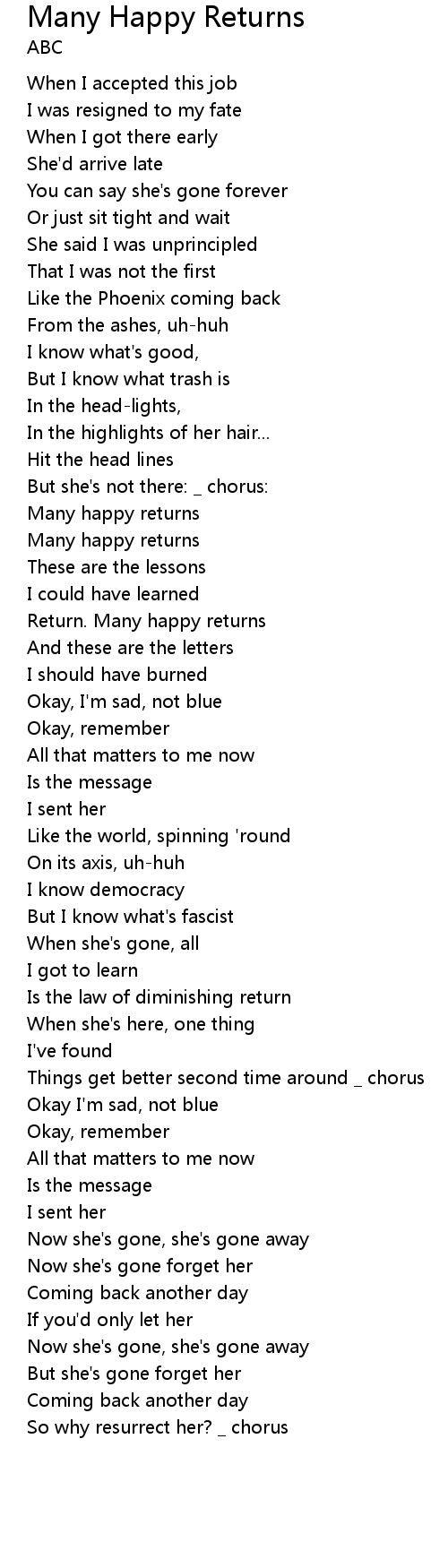 Many Happy Returns 歌词