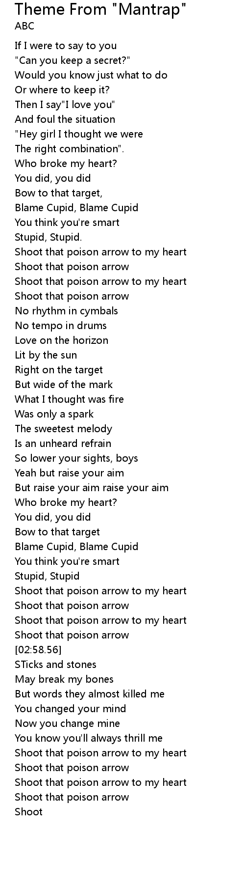 Shoot that poison arrow to my heart |