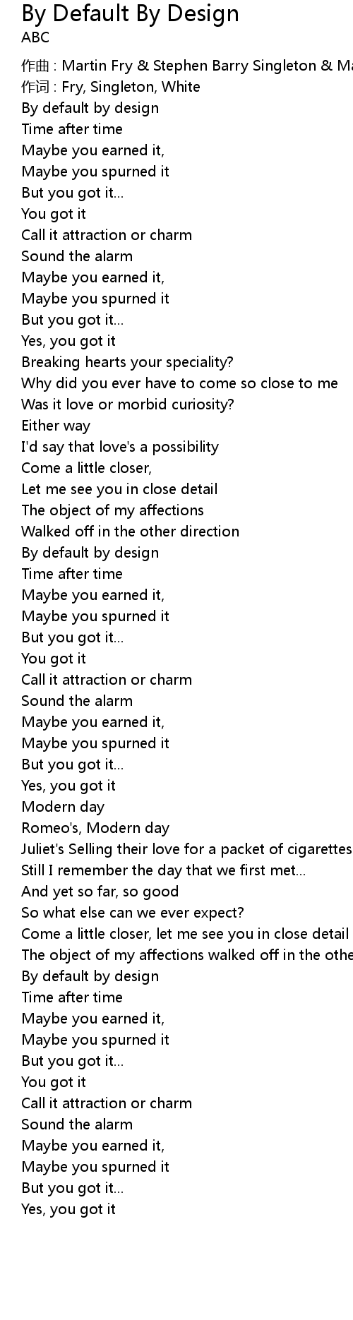 | 歌曲 | By Default By Design |