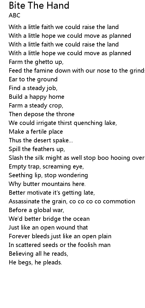 Feed the famine down with our nose to the grindstone |