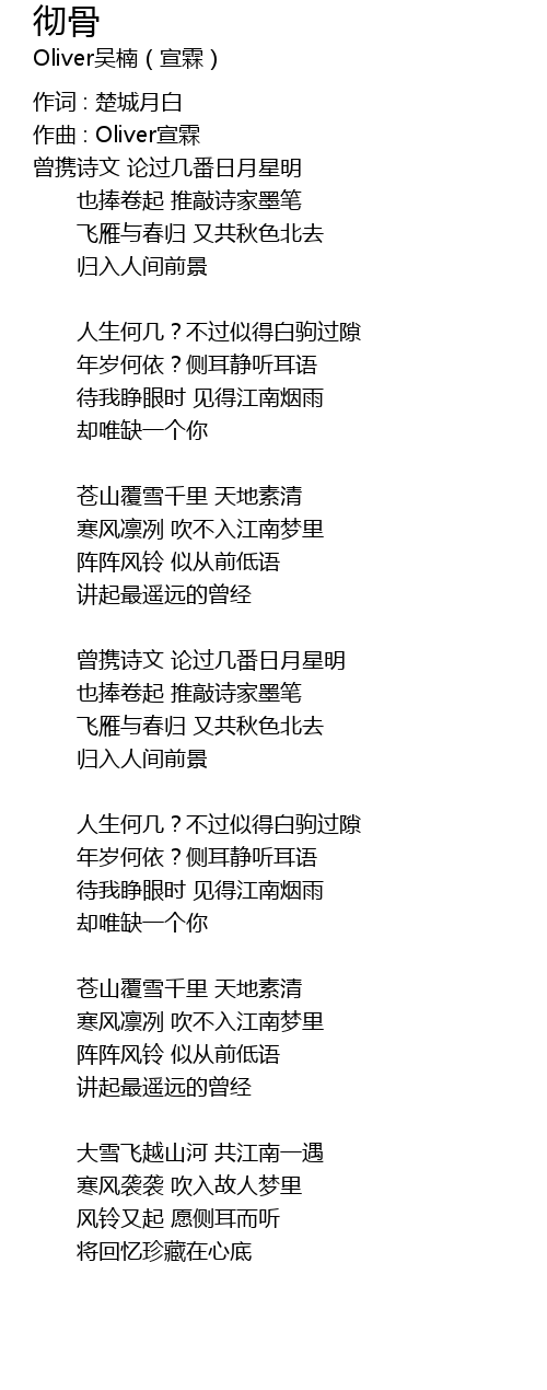 | 歌曲 | 彻骨 |