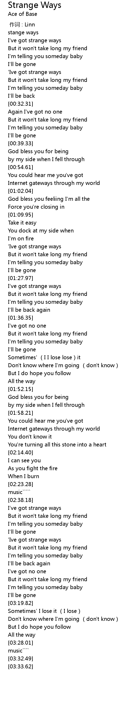 | [00:16.72] | I've got strange ways |
