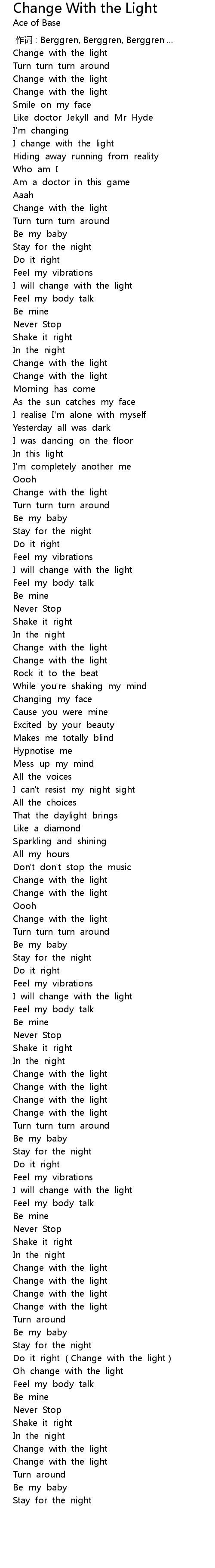 | [00:00.00] | 作词 : Berggren, Berggren, Berggren ... |