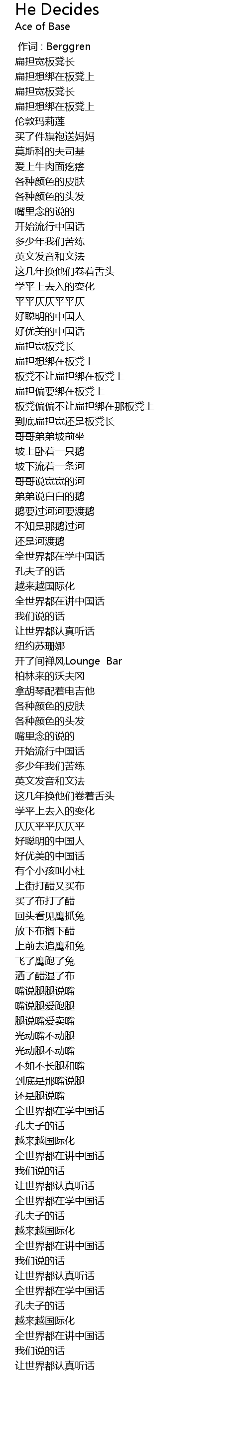 | [00:31.555] | bǎn dèng bù ràng biǎn dàn bǎng zài bǎn dèng shàng |