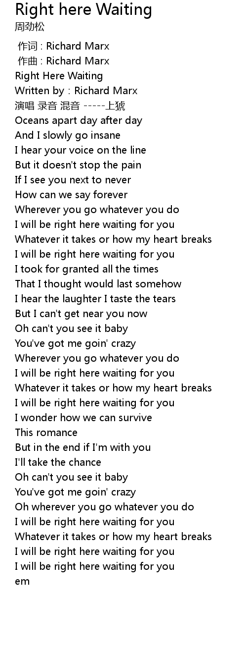 | [00:01.000] | zuò qǔ : Richard Marx |