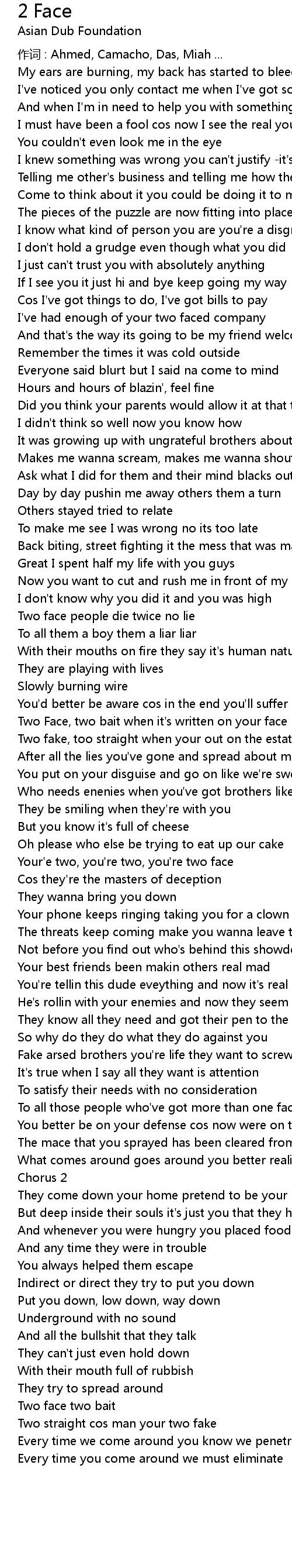 | 作词 : Ahmed, Camacho, Das, Miah ... | |
