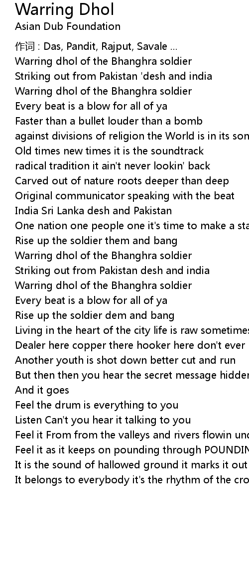 | 作词 : Das, Pandit, Rajput, Savale ... | |
