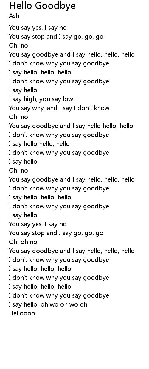 You say goodbye and I say hello, hello, hello |