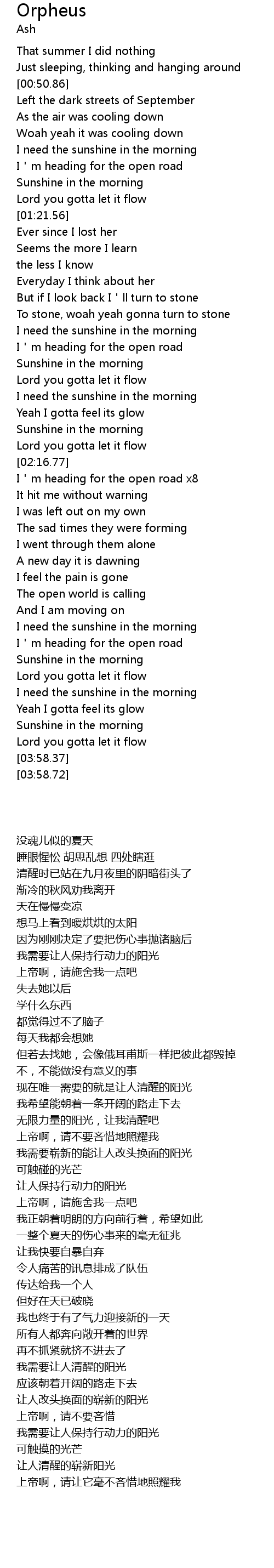 | [03:33.05] | I need the sunshine in the morning |