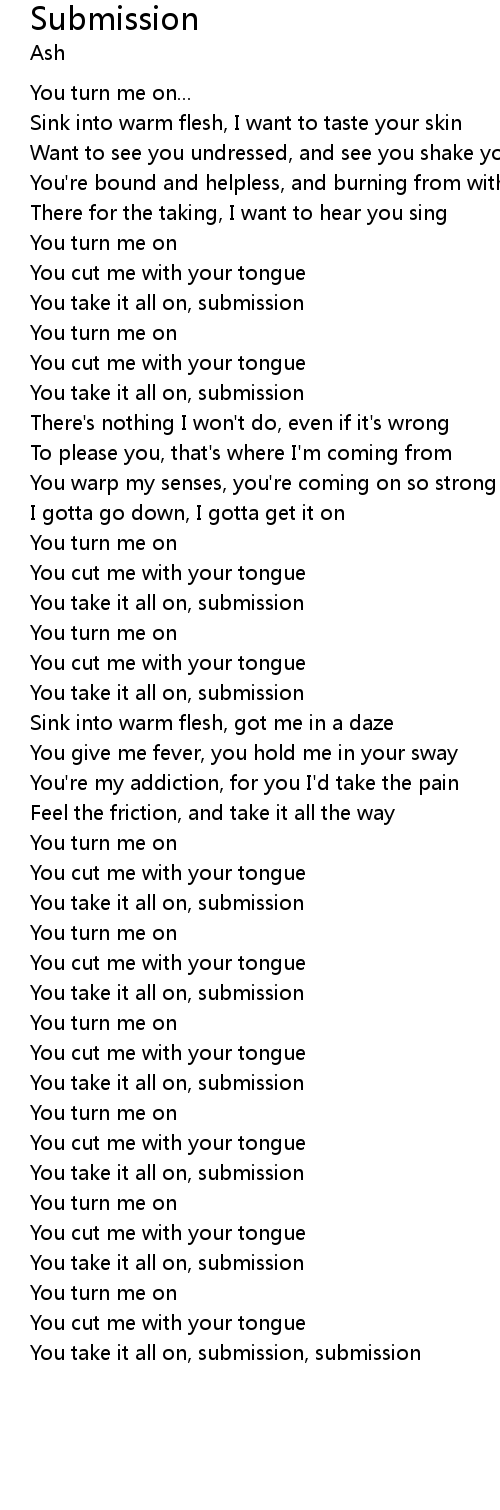 You take it all on, submission, submission |