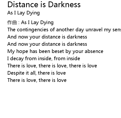 | And now your distance is darkness | |