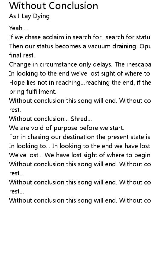 Without conclusion this song will end. Without conclusion there is no final rest... |