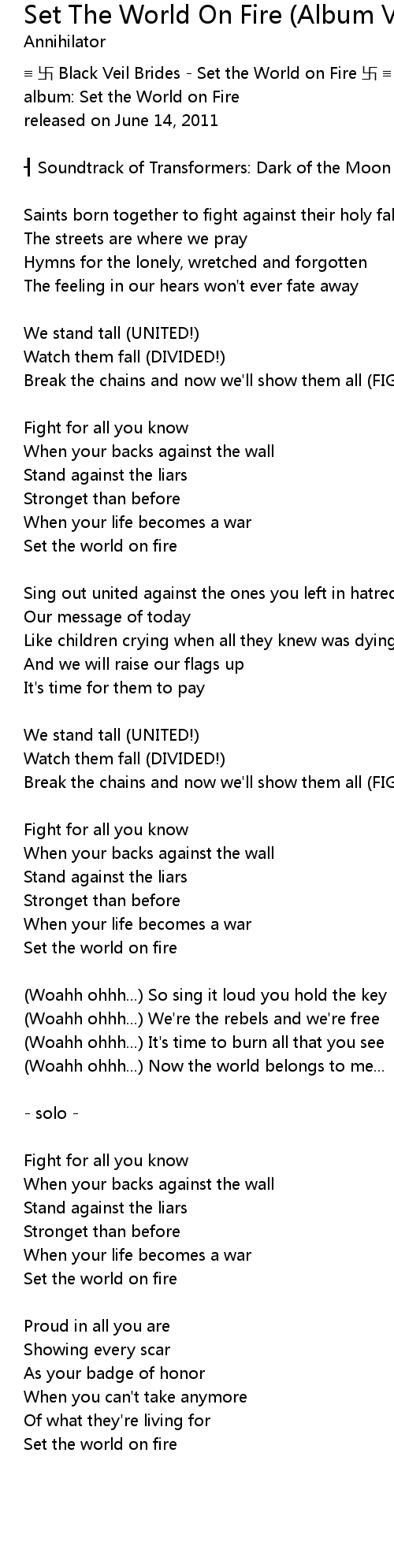 | wàn Black Veil Brides Set the World on Fire wàn | |
