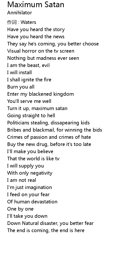 | 歌曲 | Maximum Satan |