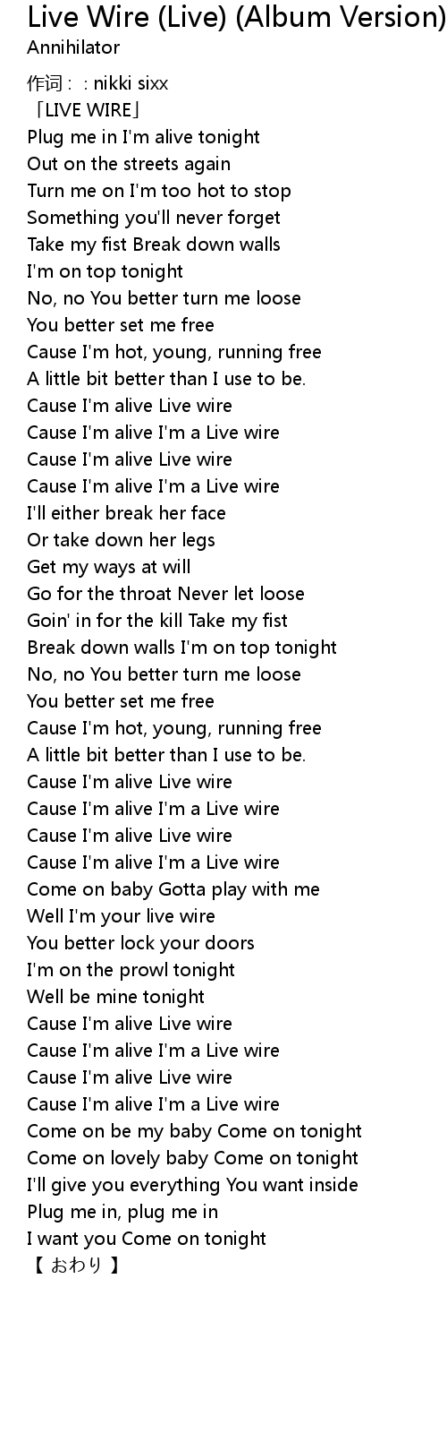 | 歌曲 | Live Wire (Live) (Album Version) |
