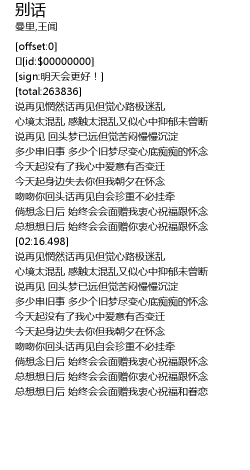 | [01:43.344] | 吻吻你回头话再见自会珍重不必挂牵 |