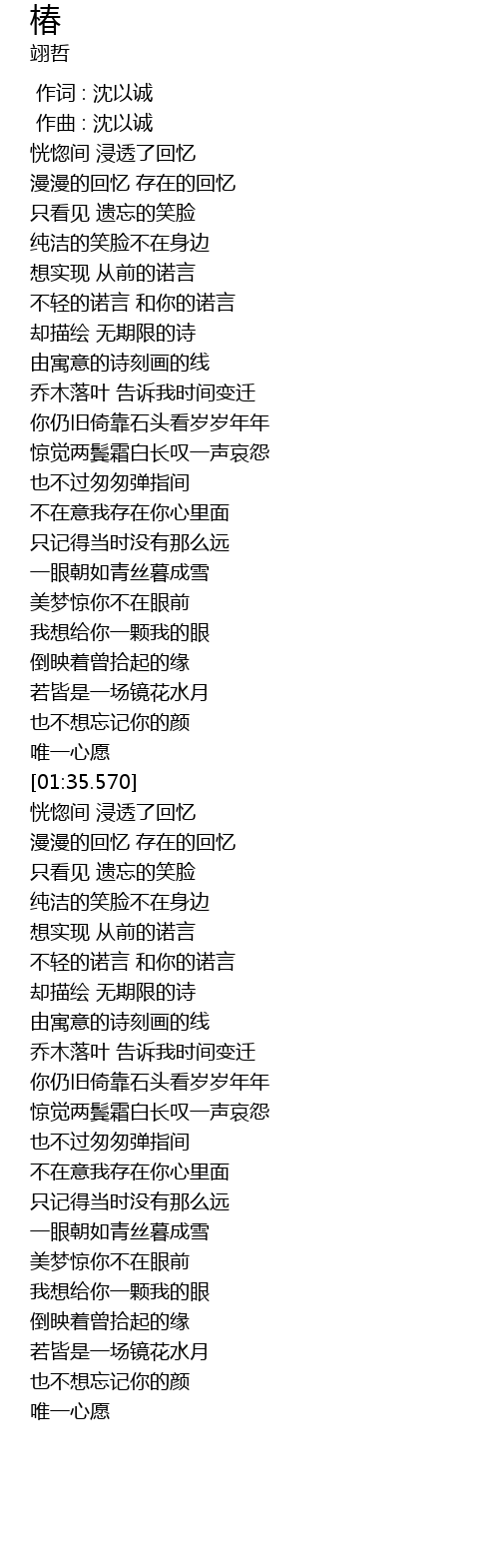 | [00:00.000] | 作词 : 沈以诚 |