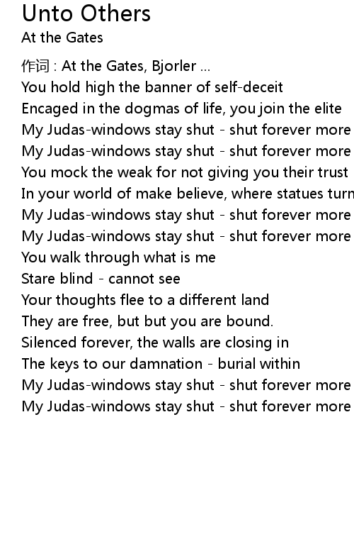 | My Judaswindows stay shut shut forever more | |