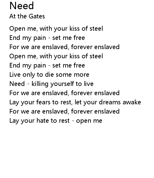 | Need - killing yourself to live | |
