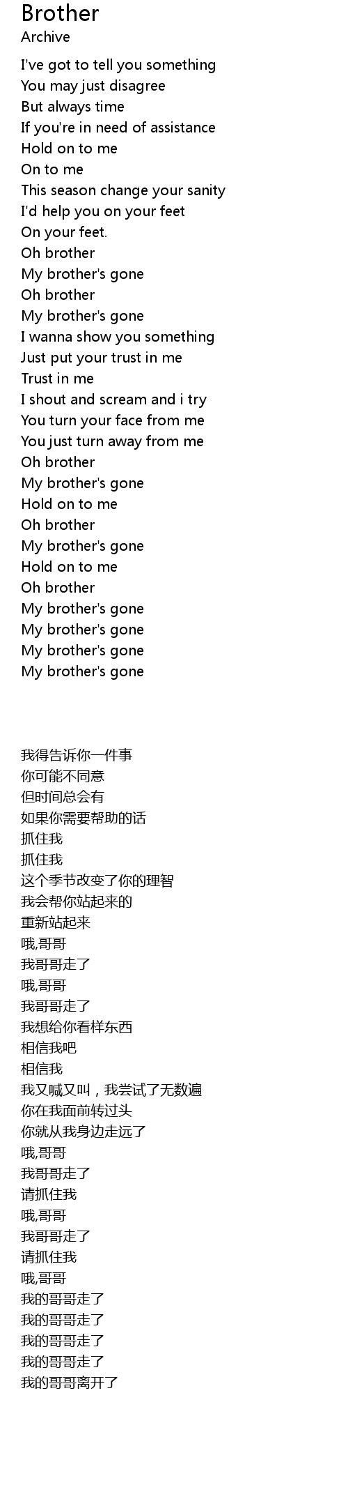 | 歌曲 | Brother |