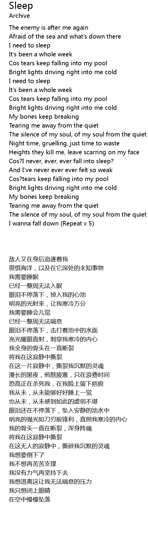 Cos?I never, ever, ever fall into sleep? |
