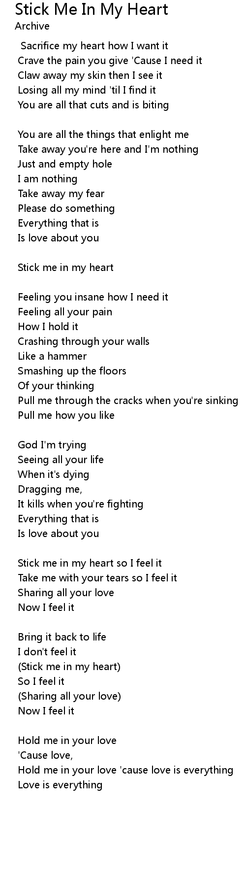 Stick me in my heart |