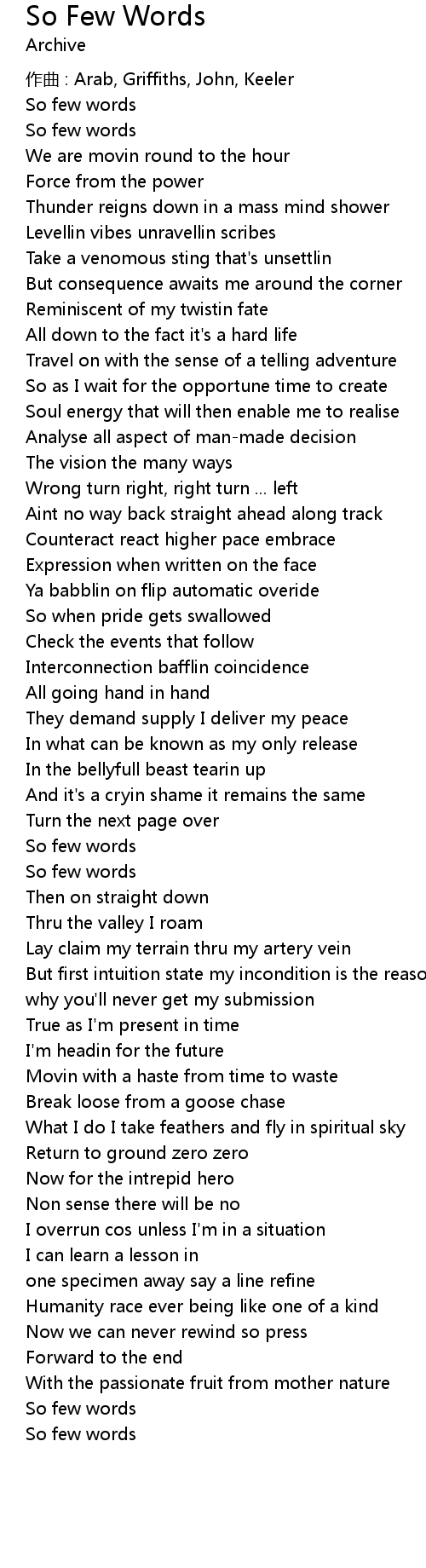 | 歌曲 | So Few Words |