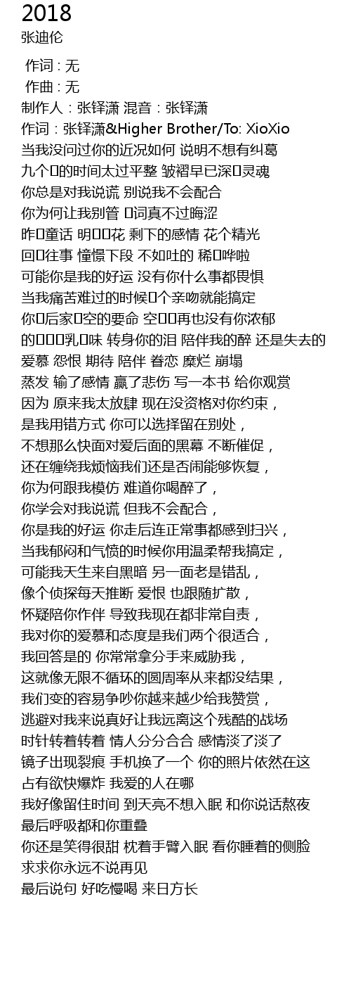 | [00:11.189] | 作词:张铎潇&Higher Brother/To: XioXio |